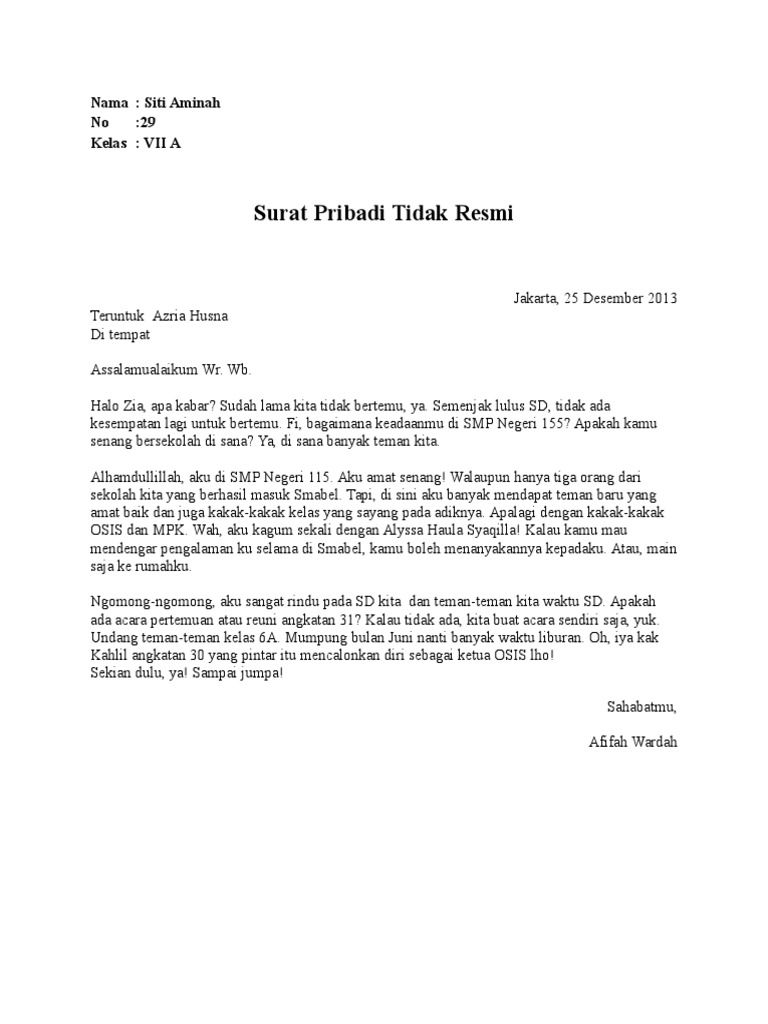 Surat pribadi adalah surat yang digunakan untuk menyampaikan berita yang dibuat oleh seseorang secara pribadi. Maka tidak heran kalau banyak orang yang akan bercerita panjang lebar mengenai liburan yang dijalani bersama keluarga masing. Suratresmi.id » surat pribadi » 15 contoh surat pribadi dalam bahasa inggris terbaru. Surat pribadi adalah surat yang itu dia sedikit gambaran tentang contoh surat pribadi yang akan kita pelajari dalam kesempatan kali karena saat liburan sekolah nanti aku berencana untuk berkunjung kerumah nenek yang aja di jogja. Contoh surat pribadi untuk mertua.