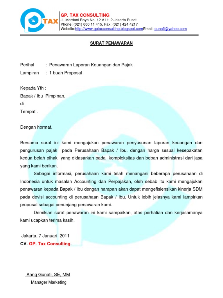 Contoh Surat Penawaran Jasa Konsultan Akuntansi Dan Pajak - Contoh Surat Penawaran Jasa Konsultan Akuntansi Dan Pajak Dapatkan Contoh - Surat penawaran jasa biasanya dibuat dan dikeluarkan oleh perusahaan yang akan menawarkan suatu jasa atau layanan kepada pihak lain.. Berdikari conuslting konsultan akuntansi dan bisnis ukm ruko tangcit, jl. Bersama dengan surat ini izinkan kami untuk mengajukan penawaran tentang jasa akuntansi kepada perusahaan pt anugerah corp. Contoh surat penawaran jasa konsultan. Penawaran jasa laporan keuangan dan laporan pajak. Surat penawaran layanan adalah salah satu jenis surat resmi yang diterbitkan oleh pelaku usaha atau perusahaan yang intinya adalah menawar.