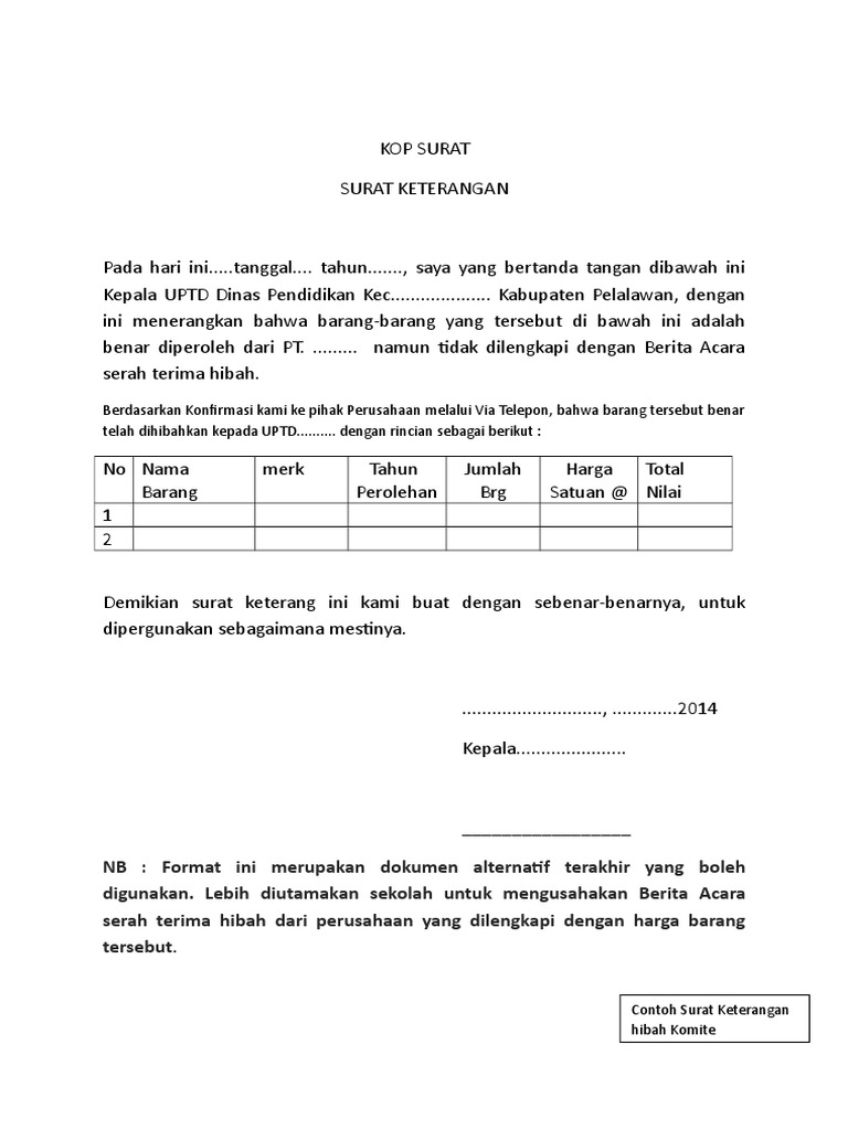 Pengurus komite sekolah untuk yang pertama kali ditetapkan dengan surat keputusan kepala contoh surat pernyataan hibah / wakaf surat pernyataan hibahyang bertandatangan. Ada banyak jenis pernyataan sekolah, bahkan oleh orang tua siswa sendiri. Soedarsono jalan raya purut dr. Contoh surat keterangan bebas narkoba dari rumah sakit. Sebab berbeda keperluan dan juga berbeda surat pernyataan. Surat pernyataan kepala sekolah ihwal kesiapan penyelenggaraan pembelajaran tatap muka di sekolah/madrasah menjadi salah satu patokan yang mesti dipenuhi oleh satuan pendidikan baik sekolah/madrasah untuk sanggup menyelenggarakan pembelajaran tatap wajah di sekolah. Documents similar to surat pernyataan komite sekolah. Format surat pernyataan terdiri dari 3 bagian pokok, yaitu nama surat, isi pernyataan, dan penutup surat. Surat dinas adalah surat yang dibuat oleh instansi resmi atau dinas yang berguna untuk berbagai kepentingan tertentu. Telah sesuai dengan peraturan/pedoman yangberlaku sebagai penerima tunjangan profesi gurudemikian surat pernyataan ini dibuat dengan sebenarnya dan apabila dikemudian hariditemukan bahwa yang bersangkutan. Apabila dari pihak sekolah ataupun universitas ingin mengirimkan perwakilan dari lembaganya maka pasti akan dibawakan surat rekomendasi sebagai pengenal. Dalam hal ini perlu diketahui bahwa surat keterangan adalah. Biasanya surat ini dilengkapi dengan materai sebagai penguat kepercayaan dan agar terlihat kredibel.